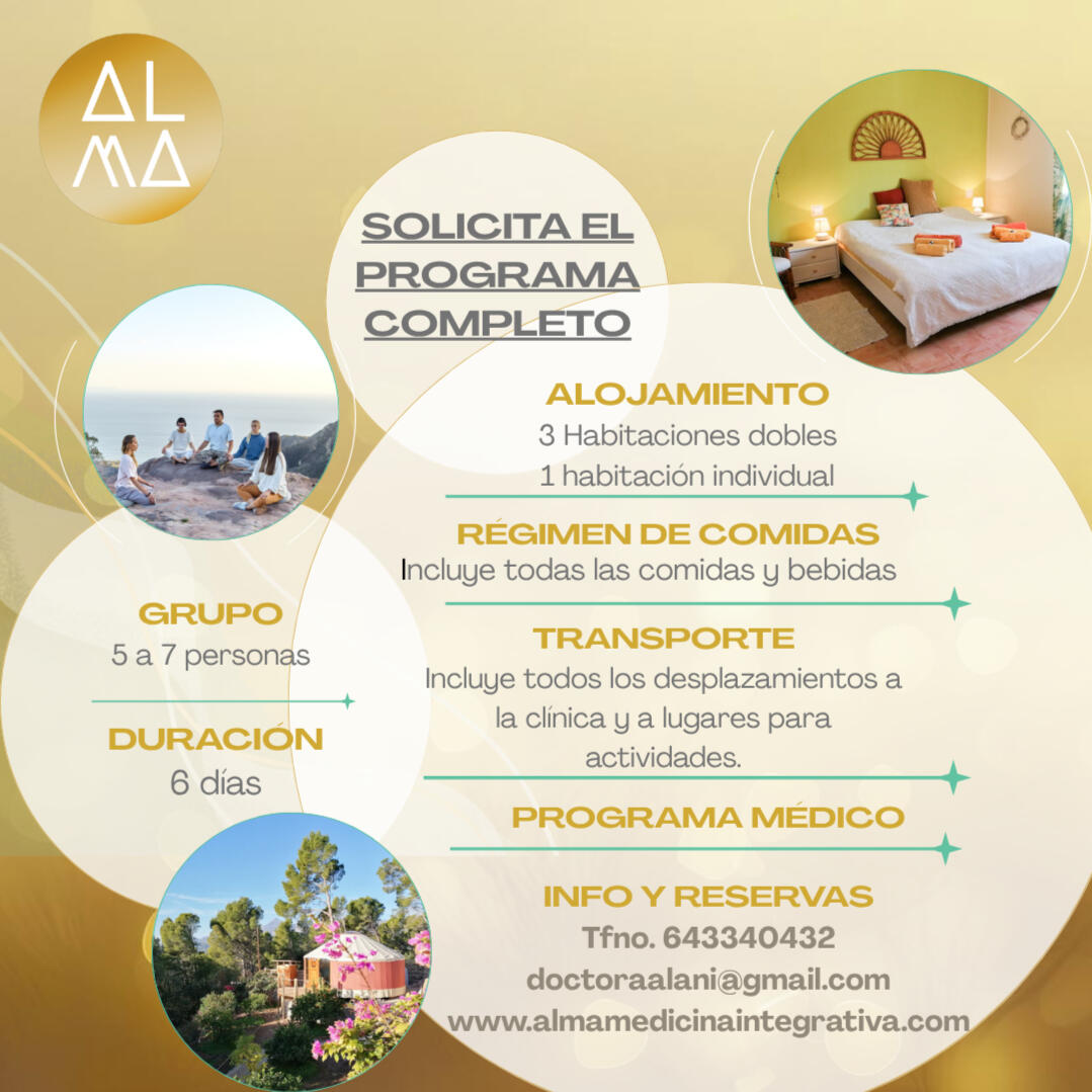 Además de las actividades propias de crecimiento personal, nuestros retiros ofrecen un innovador programa médico y nutricional específico que complementa de manera significativa el objetivo fundamental de esta propuesta: equilibrar el eje cuerpo-mente-alma para mejorar nuestra salud.La temática de los retiros puede ser general o específica para diferentes patologías. (Consulta calendario)